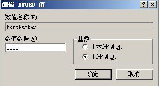 2. 在 tcp 子键所对应的右侧显示区域中,我们会看到一个名为 PortNumber 的子键,这个子键其实就是用来定义远程桌面端口号码的,将该子键的数值设置成其他端口号码,例如可以将其数值设置成 9999 (自定义)。
